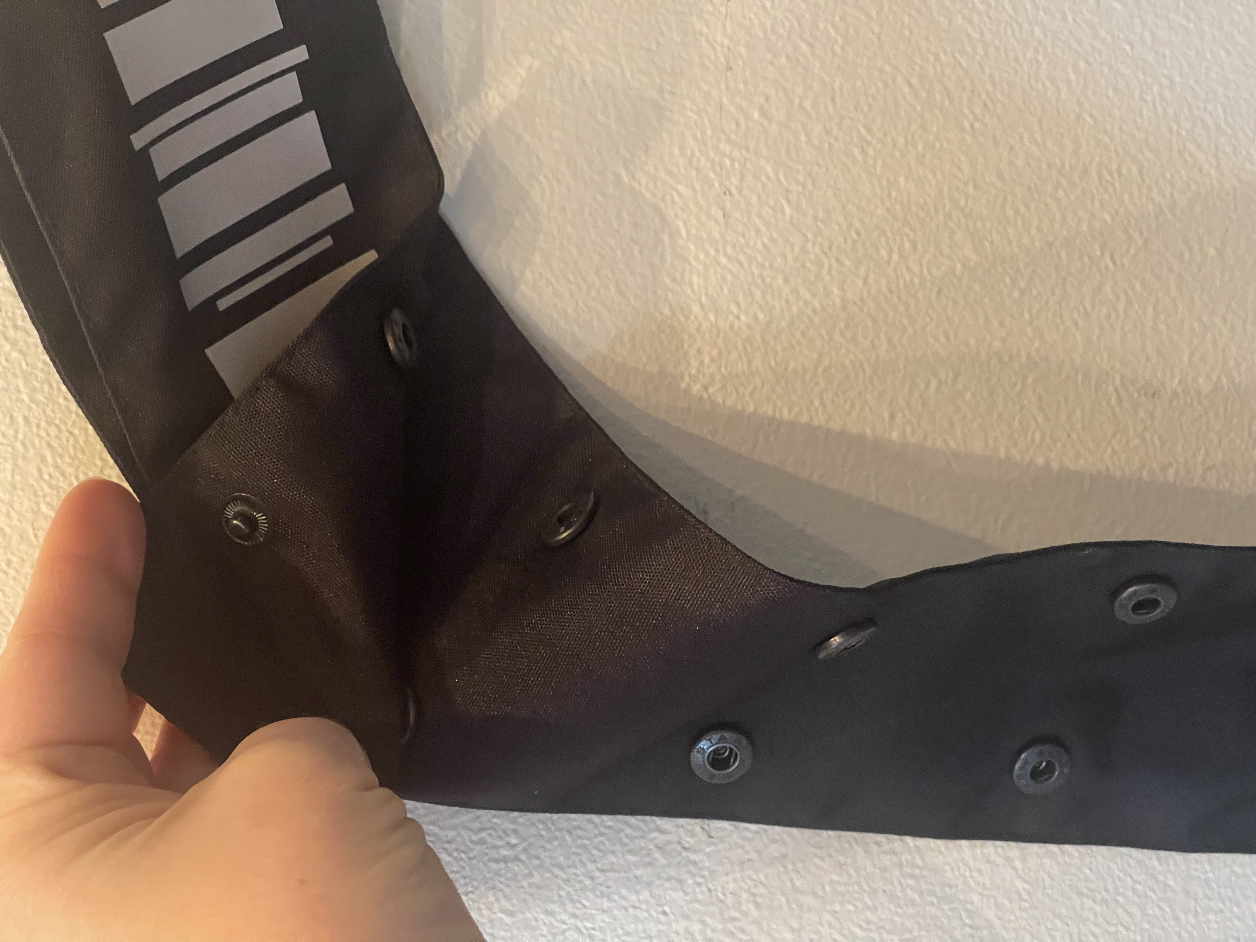 Bra med tryckknappar i storleksjusteringen, kardborrar gillar jag inte alls – blir alltid fulla med skräp och fastnar i fel saker. Har inte provat bältet skarpt ännu, men det känns behagligt att ha på sig. Känner mig lite osäker på om knäppning/spänne håller ihop om man inte drar åt bältet ordentligt – hade önskar en lika enkel, men kanske lite säkrare stängning. Snyggt dessutom, det här kommer jag att använda hela det mörka halvåret!